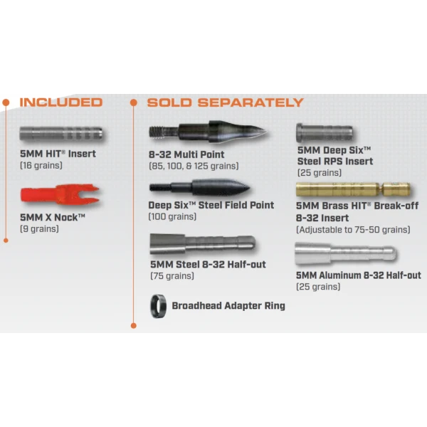 - Pointes, Inserts en acier RPS à six filets et inserts de rupture en laiton X HIT 8-32 vendus séparément